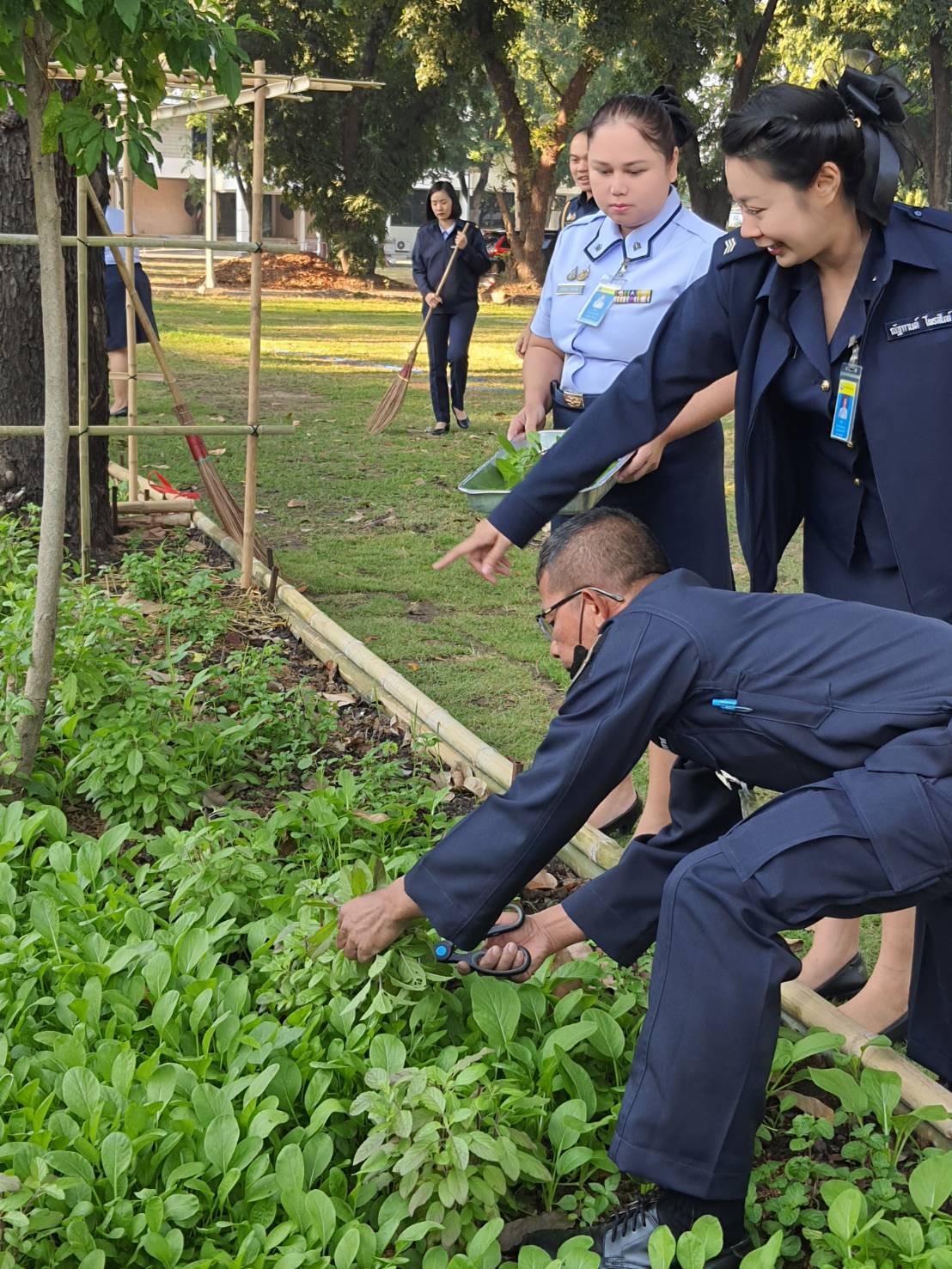 น.อ.สมาน มูลกัน รอง ผบ.รร.สธ.ทอ.ยศ.ทอ.ร่วมกับข้าราชการ ลูกจ้าง และพนักงานราชการ เก็บเกี่ยวผลผลิตที่ได้จากการปลูกพืชผัก เนื่องในกิจกรรมวันดินโลก และได้มาประกอบอาหารเลี้ยงข้าราชการ รร.สธ.ทอ.ฯ เมื่อวันพุธที่ ๑๕ ม.ค.๖๘ ณ รร.สธ.ทอ.ฯ