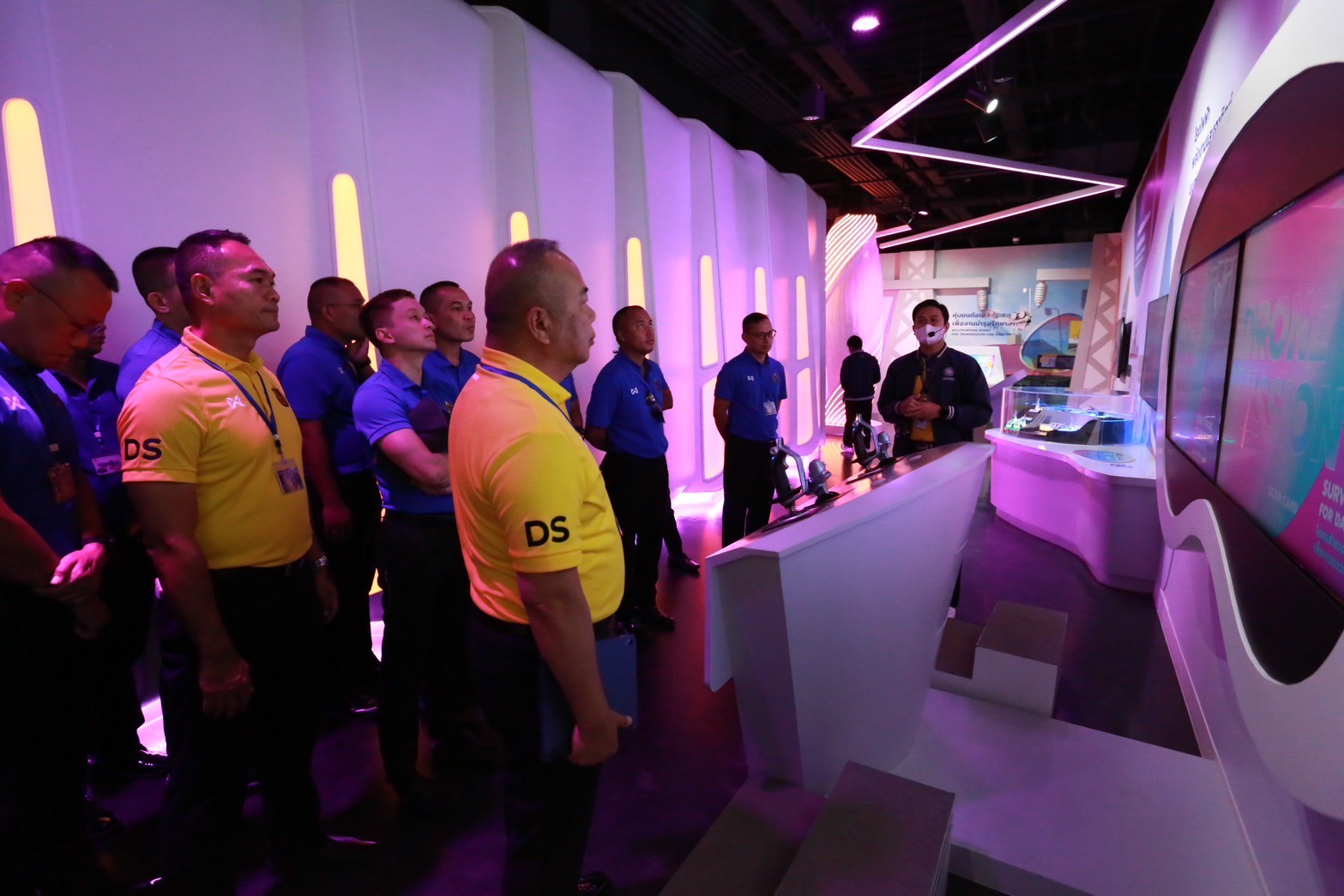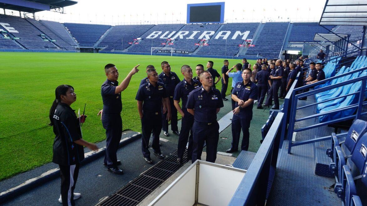 จากนั้นเดินทางไปเยี่ยมชมสนามช้างอารีน่า อำเภอเมือง จังหวัดบุรีรัมย์ รับฟังบรรยายสรุปกิจการของสนามช้างอารีน่า และเยี่ยมชมภายใน โดยสนามช้างอารีน่าเป็นเครื่องมือสำคัญในการขับเคลื่อนเศรษฐกิจของภูมิภาค และเสริมความมั่นคงทางเศรษฐกิจของประเทศ ผ่านการกระจายรายได้ การสร้างงาน การส่งเสริมการท่องเที่ยว และการสร้างภาพลักษณ์เชิงบวกให้กับประเทศไทย