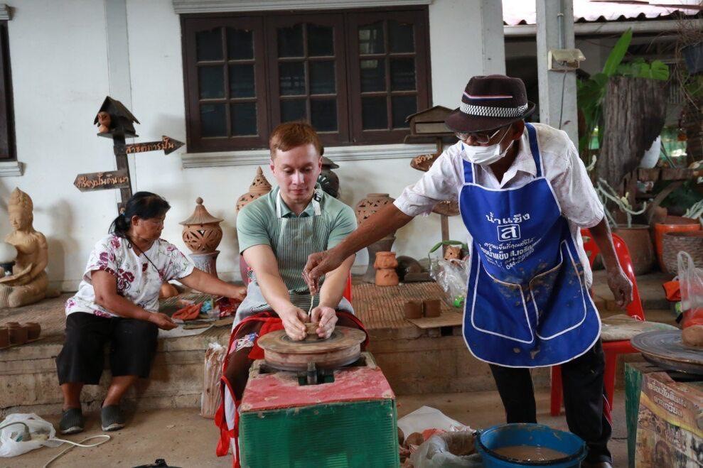 จากนั้น รับฟังการบรรยายสรุปและเยี่ยมชมกิจการ กองบิน ๑ โดยมี นาวาอากาศเอก ดำรงค์ศักดิ์ ฟักขำ รองผู้บังคับการกองบิน ๑ พร้อมด้วย กำลังพลกองบิน ๑ ให้การต้อนรับ โดยได้บรรยายสรุป “ภารกิจหน้าที่ของกองบิน ๑ กับการรักษาความมั่นคง” และนำคณะเข้าเยี่ยมชมกิจการกองบิน ๑ โดยจัดแสดงอากาศยานพร้อมบรรยายสมรรถนะ ของอาวุธยุทโธปกรณ์ทั้งภาคพื้น และภาคอากาศ นอกจากนี้ ยังมีโอกาสไปทัศนศึกษาศูนย์การเรียนรู้เครื่องปั้นดินเผา (ด่านเกวียน) เรียนรู้ถึงภูมิปัญญาชาวบ้านในการทำเครื่องปั้นดินเผา อันสามารถสร้างรายได้แก่ชุมชนได้อย่างยั่งยืน