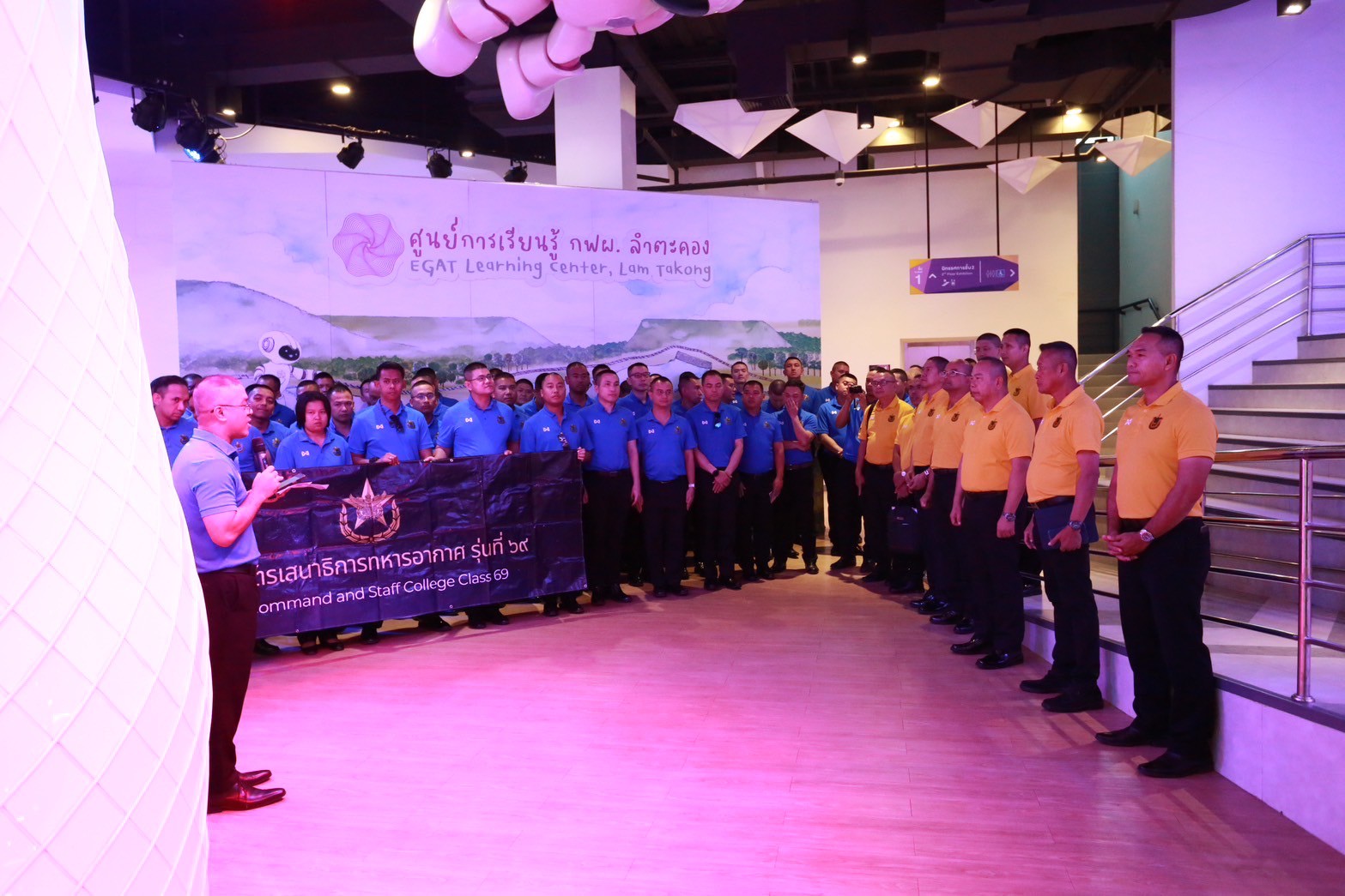 วันสุดท้ายของการศึกษาดูงานภาคตะวันออกเฉียงเหนือ คณะนายทหารนักเรียนหลักสูตรเสนาธิการทหารอากาศ รุ่นที่ ๖๙ เข้าชมกังหันลม เขายายเที่ยง จังหวัดนครราชสีมา และเข้าเยี่ยมชมศูนย์การเรียนรู้ กฟผ. ลำตะคอง (EGAT Learning Center , Lam Takong) เป็นโครงการที่ กฟผ. มุ่งทำขึ้นเพื่อเป็นแหล่งเรียนรู้ด้านพลังงานไฟฟ้า การผลิตไฟฟ้าจากพลังงานประเภทต่าง ๆ ทั้งจากเชื้อเพลิงฟอสซิล และพลังงานหมุนเวียน รวมถึงนำนวัตกรรมที่ทันสมัยด้วยระบบ Wind Hydrogen Hybrid ซึ่งเป็นเทคโนโลยีกักเก็บพลังงานไฟฟ้าจากกังหันลมในรูปของก๊าซไฮโดรเจนมาใช้ในการผลิตพลังงานไฟฟ้าให้กับอาคารศูนย์การเรียนรู้ โดยประเทศไทยถือเป็นประเทศแรกในภูมิภาคเอเชียตะวันออกเฉียงใต้ที่นำเอานวัตกรรมดังกล่าวมาใช้เพื่อกักเก็บพลังงานไฟฟ้า