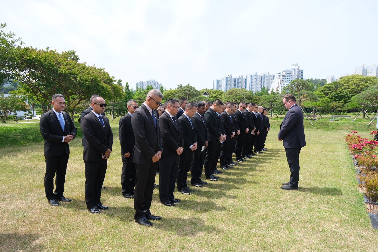 หลังจากนั้น เข้าเยี่ยมชมพิพิธภัณฑ์วิทยาศาสตร์แห่งชาติปูซาน Busan National Science Museum ศูนย์การเรียนรู้ด้านเทคโนโลยีในหลากหลายด้านและวิทยาศาสตร์ที่นำสมัย และเดินทางไปเยี่ยมชมวัดแฮดงยงกุงซา วัดชื่อดังแห่งเมืองปูซานที่สร้างบนโขดหินริมชายหาด ในจังหวัดคยองซังใต้ วัดแห่งนี้เป็นสถานที่ศักดิ์สิทธิ์และสวยงาม เหมาะสำหรับการมาชมพระอาทิตย์ขึ้นในยามเช้า และมักเป็นสถานที่ ซึ่งเหล่าพุทธศาสนิกชนในเกาหลี พากันมาอธิษฐานขอพรในวาระต่างๆ รวมไปถึงในวันขึ้นปีใหม่ - เมื่อวันที่ ๑๑ มิถุนายน ๒๕๖๘ พลอากาศตรีวิสูตร อินทร์ขำ ผู้บัญชาการโรงเรียนเสนาธิการทหารอากาศ กรมยุทธศึกษาทหารอากาศ และคณะนายทหารนักเรียนหลักสูตรเสนาธิการทหารอากาศ รุ่นที่ ๖๙ (สาย ๒) เข้าร่วมพิธีวางพวงมาลา ณ สุสานอนุสรณ์สหประชาชาติ (United Nations Memorial Cemetery Korea) สถานที่แห่งนี้สร้างขึ้นเพื่อเป็นเกียรติและเป็นการรำลึกถึง ทหารของสหประชาชาติจาก ๑๖ ประเทศและองค์การสหประชาชาติ ที่ให้ความช่วยเหลือในการสู้รบ ในระหว่างสงครามเกาหลี (ค.ศ. ๑๙๕๐ - ค.ศ.๑๙๕๓) ซึ่งทำให้มีทหารสูญเสียชีวิตจำนวน ๒,๒๘๙ นาย และอีก ๑๑ นายที่ถูกสังหารในฐานะเชลยศึก โดยที่แห่งนี้ได้รับการขึ้นทะเบียนให้เป็น มรดกทางวัฒนธรรมลำดับที่ ๓๕๙ โดยสำนักงานมรดกทางวัฒนธรรมแห่งประเทศเกาหลีใต้ โดยและ มีการสร้างกำแพงแห่งความทรงจำ (The Wall of Remembrance) ซึ่งเป็นกำแพงหินอ่อน ที่สลักรายชื่อทหารที่ถูกสังหาร และหายตัวไปในระหว่างสงครามจำนวนถึง ๔๐,๘๖๙ รายชื่อ รวมถึงทหารจากประเทศไทยด้วย