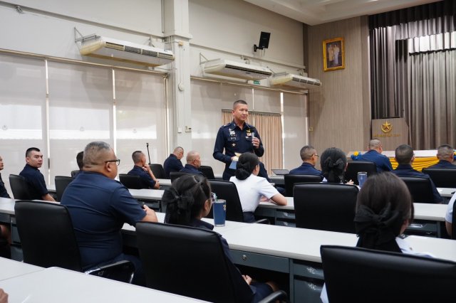 พลอากาศตรี ณัฐวุฒิ อจลบุญ ผู้บัญชาการโรงเรียนเสนาธิการทหารอากาศ กรมยุทธศึกษาทหารอากาศแนะนำตัวผู้บังคับบัญชาและ รับฟังความคิดเห็นข้าราชการโรงเรียนเสนาธิการทหารอากาศ เนื่องในโอกาสเข้ารับตำแหน่ง เมื่อวันที่ ๗ ตุลาคม พ.ศ.๒๕๖๘ ณ ห้องบรรยายโรงเรียนเสนาธิการทหารอากาศ กรมยุทธศึกษาทหารอากาศ