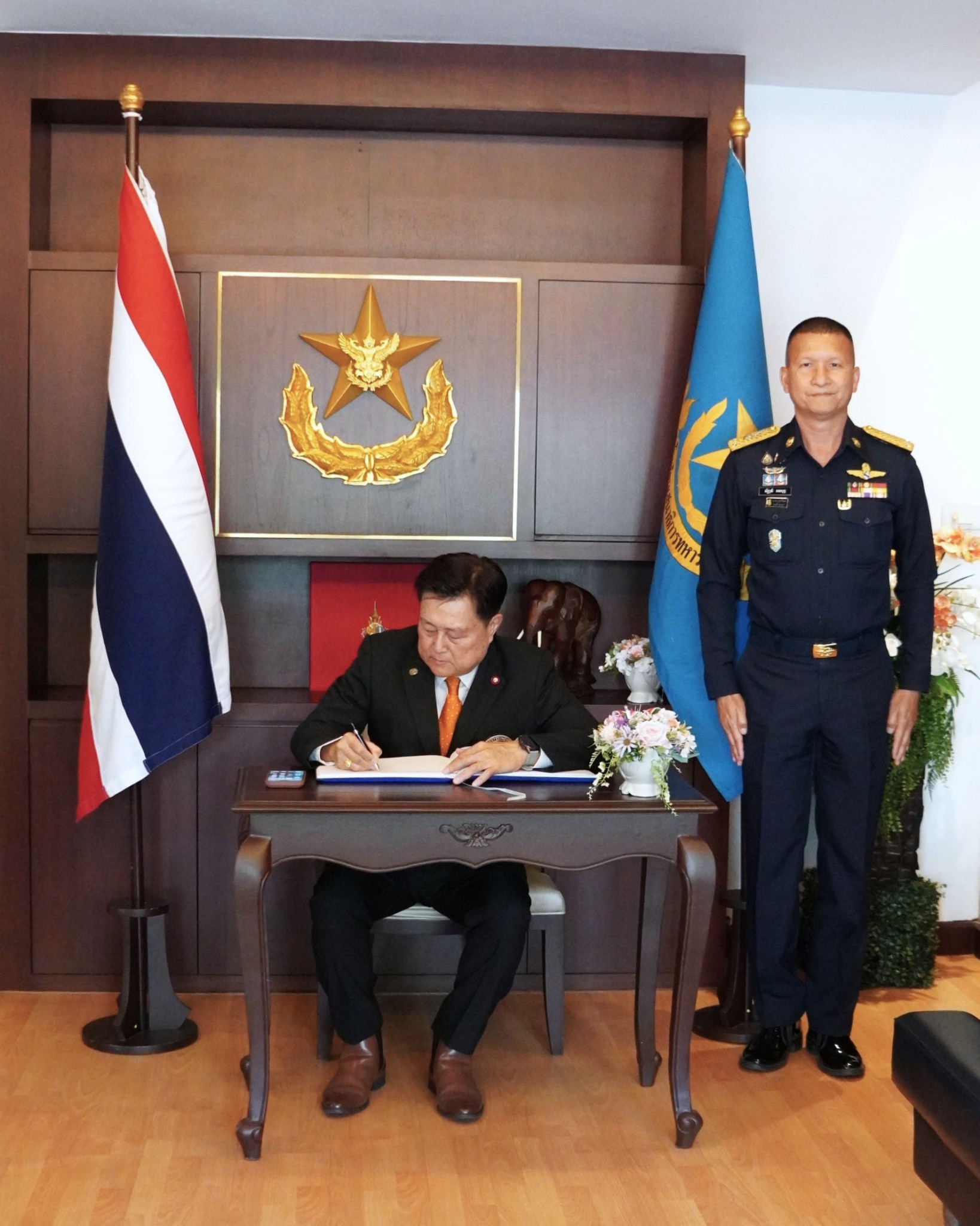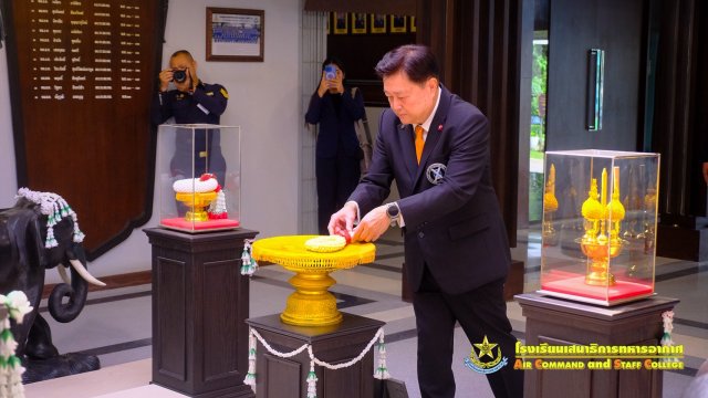 รร.สธ.ยศ.ทอ. ต้อนรับ พล.อ.อ.วรฉัตร ธารีฉัตร อดีตผู้บังคับบัญชาฯ ในโอกาสให้ข้อมูลประวัติการจัดสร้างพระอนุสาวรีย์พระบิดาแห่งกองทัพอากาศ